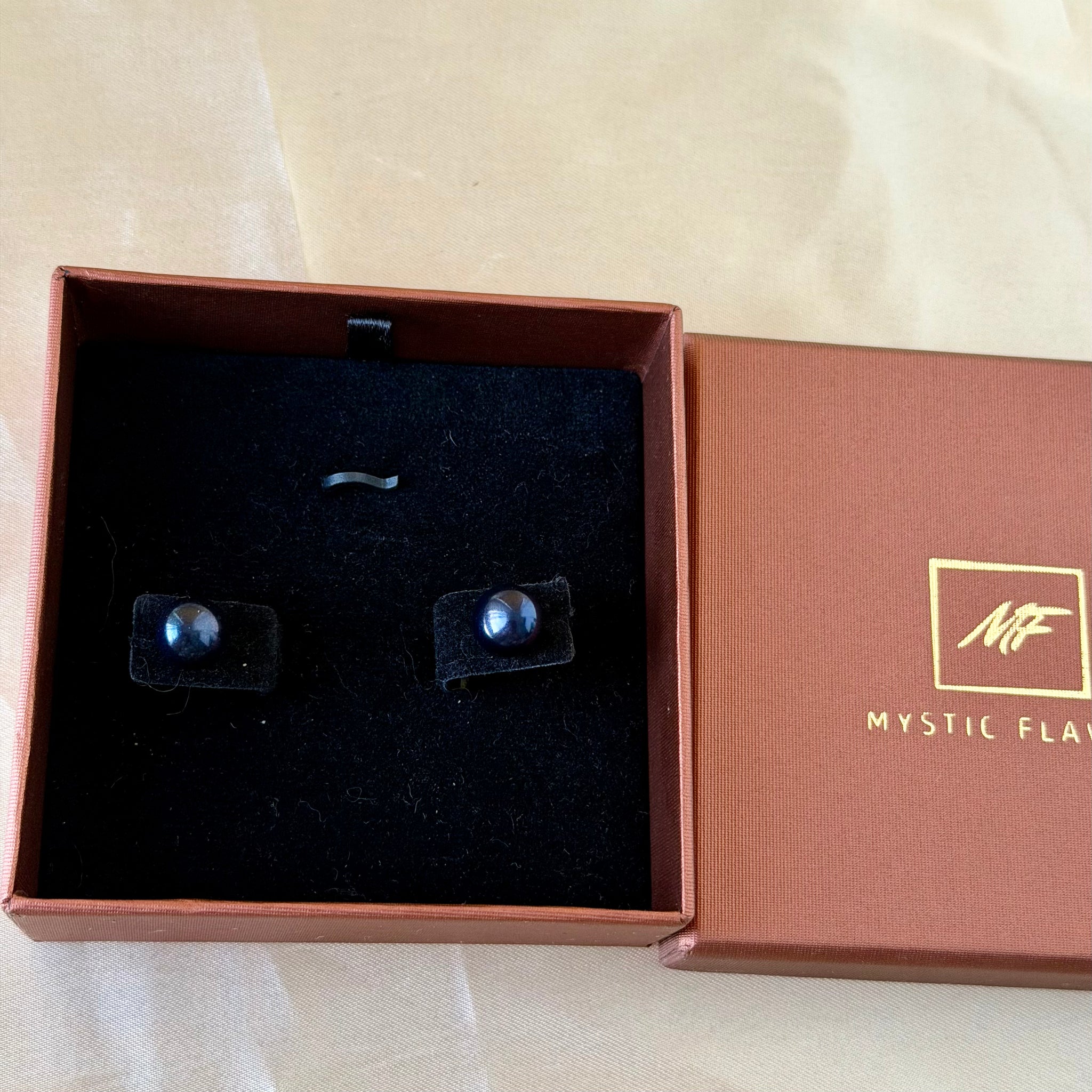 Black Natural Pearl Stud Silver Earrings (11 MM)