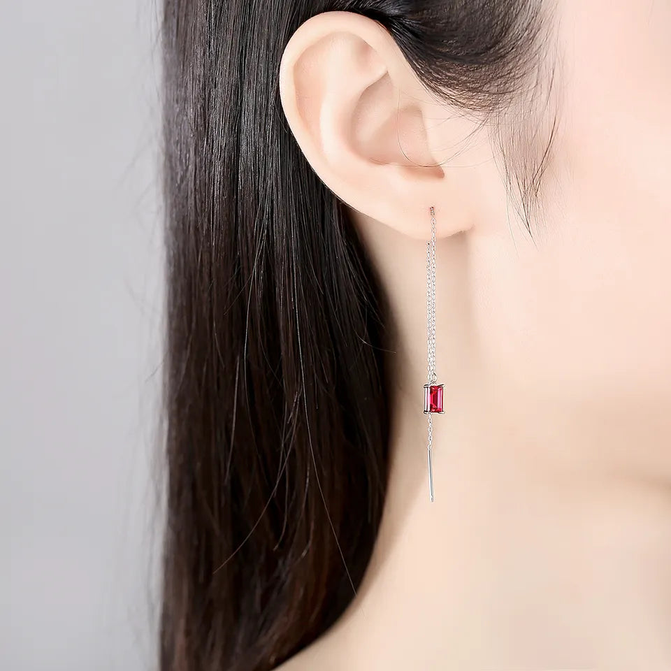 Emerald Ruby Gemstone Thread Silver Earrings