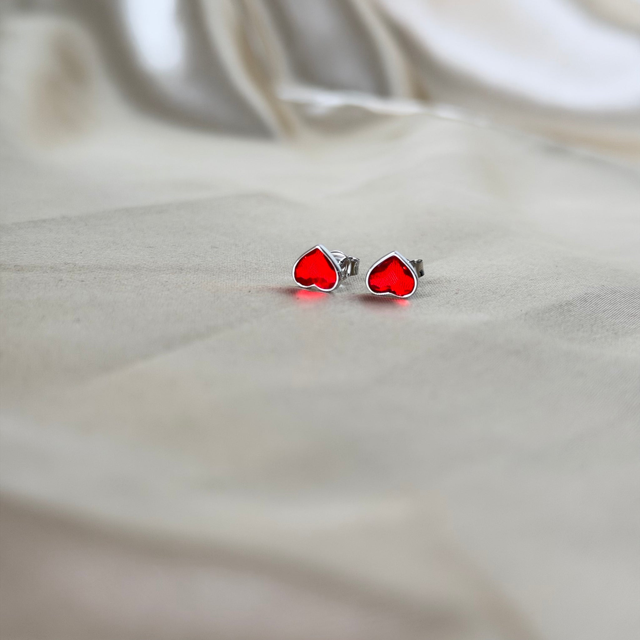 Red Heart Swarovski Crystal Exquisite Silver Earrings