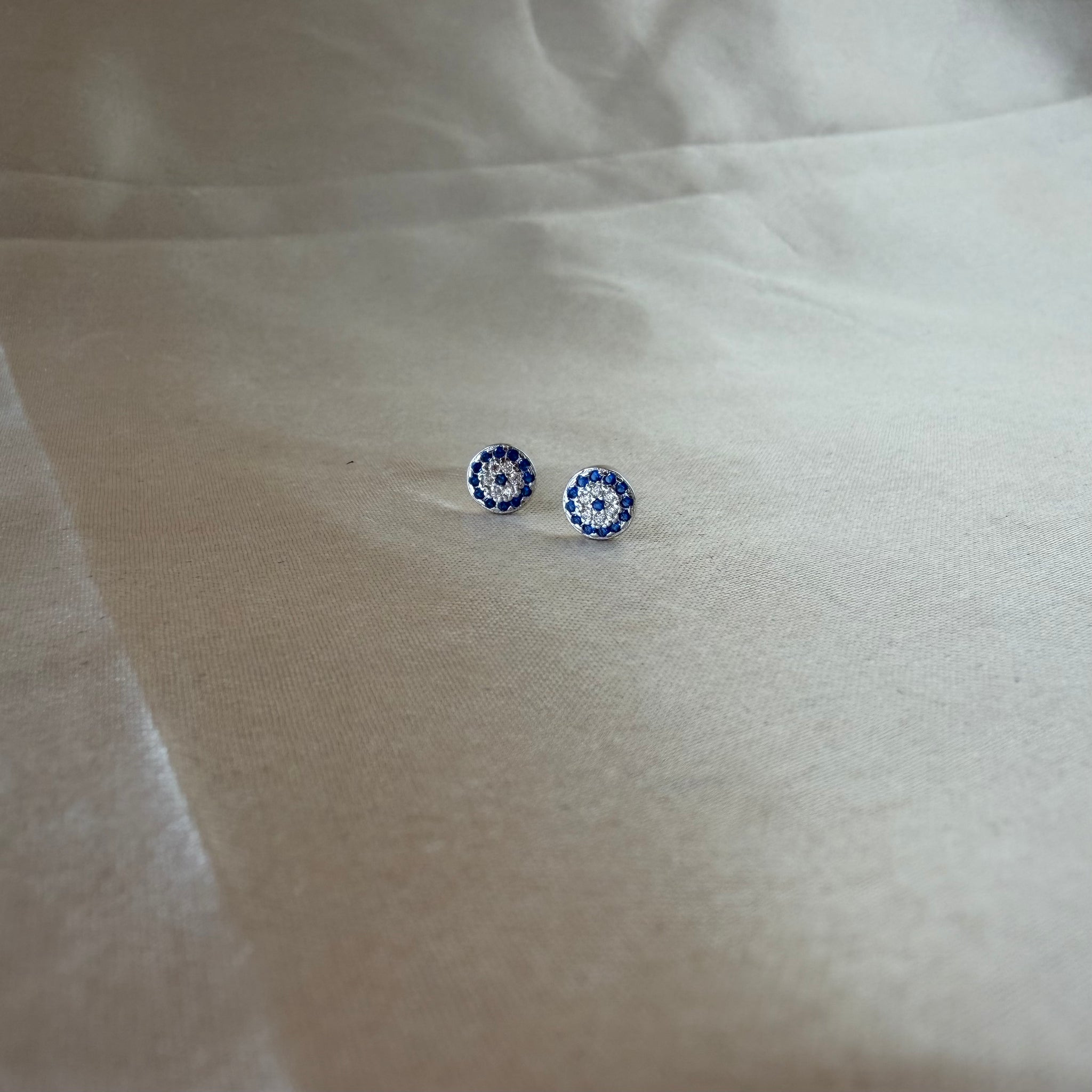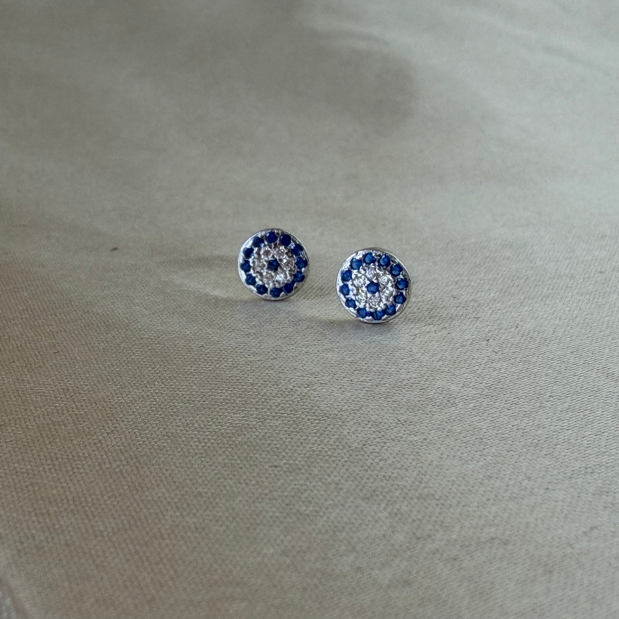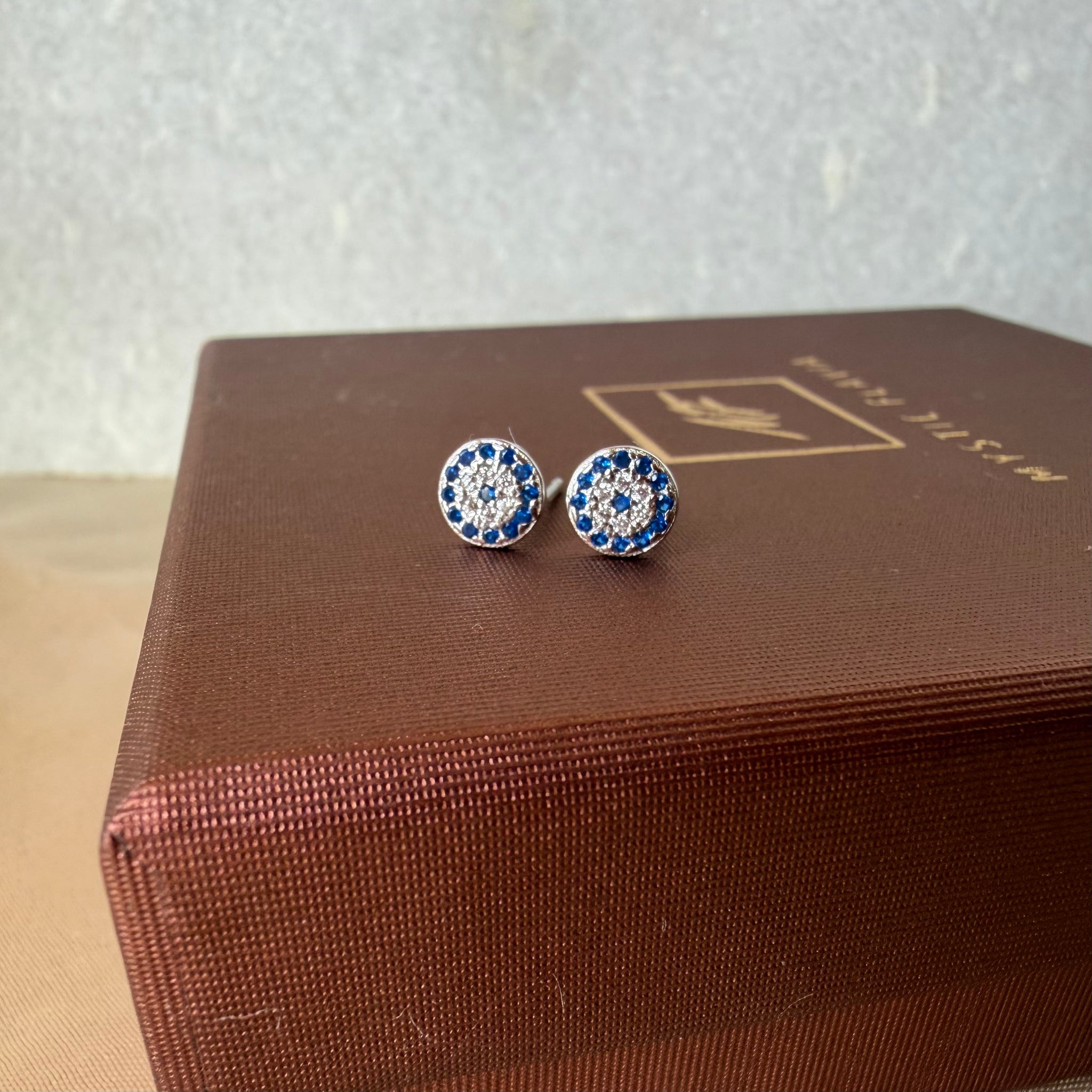 White Gold Turkish Evil Eye Stud Silver Earrings