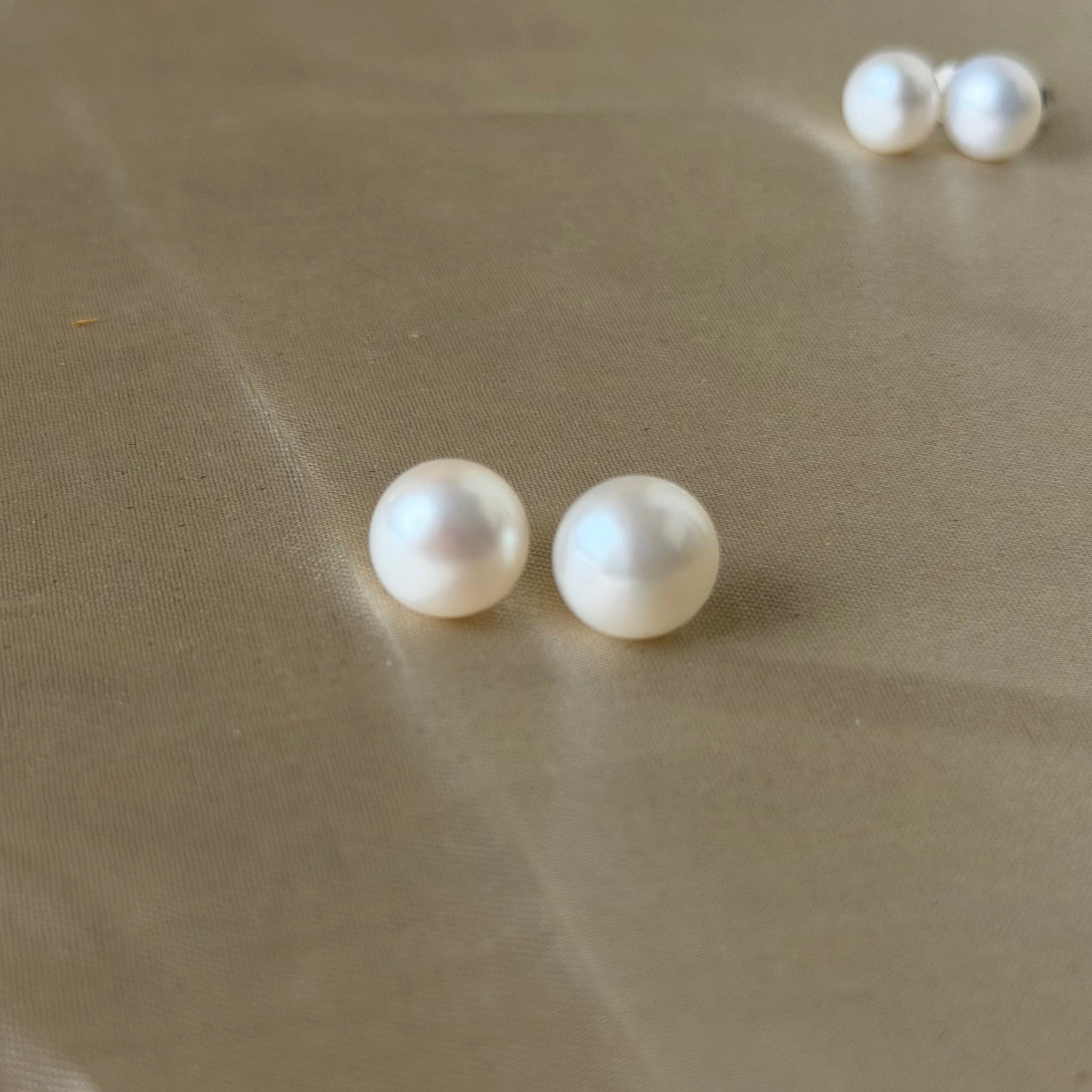 White Natural Pearl Stud Silver Earrings (11 MM)